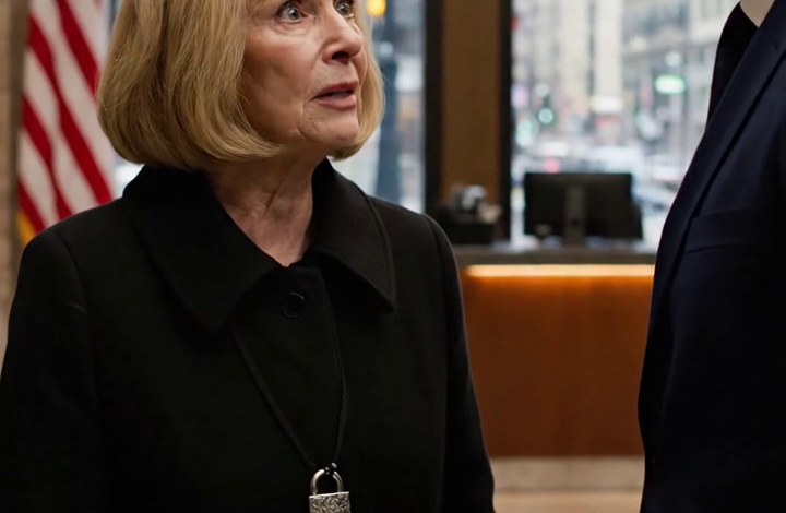 Ze bewoog zich langzaam en soepel, alsof ze de beweging in een spiegel had gerepeteerd. Ze bukte zich naast haar stoel en pakte een map op – dik, stijf, het soort dat je meeneemt naar bijeenkomsten waar over het leven van mensen wordt beslist.