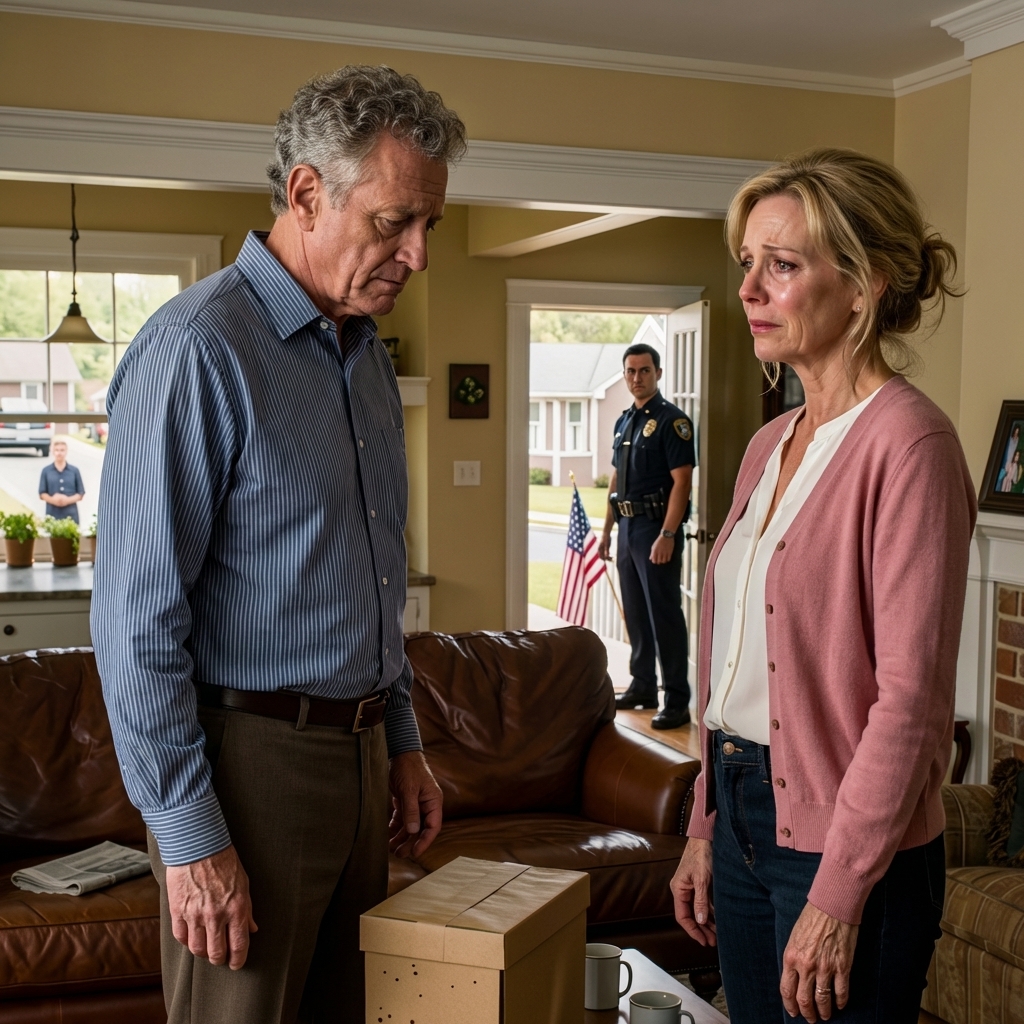 ‘Kom binnen,’ zei ik, terwijl ik opzij stapte. ‘De buren zijn dol op roddelen.’