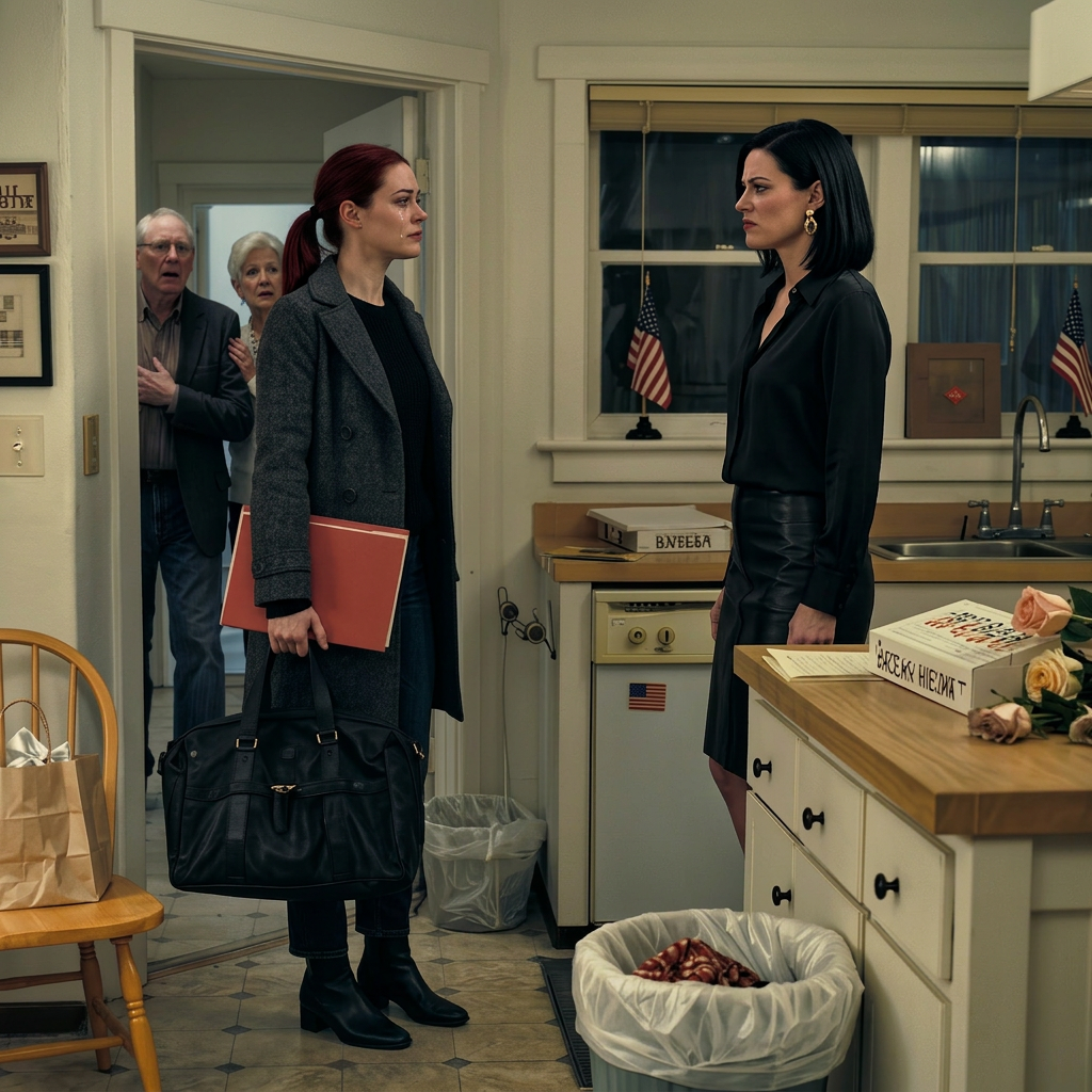 Mijn schoondochter stond naast me met een designzonnebril op die waarschijnlijk meer kostte dan mijn maandelijkse huur. Ze droeg een strakke zwarte jurk met hoge hakken die steeds wegzakten in het gras. Ik merkte dat ze niet huilde, zelfs niet een klein beetje.