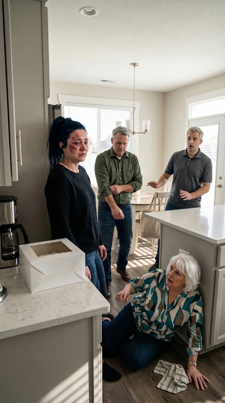 Ava verstijfde midden in haar dans. Eli stopte met het wiebelen van het kinderzitje met zijn voet. Matt richtte zich op vanuit de deuropening van de woonkamer, met zijn bier half aan zijn mond. Mijn moeder drukte beide handen plat op het aanrecht alsof ze zich door een aardbeving heen probeerde te slaan.