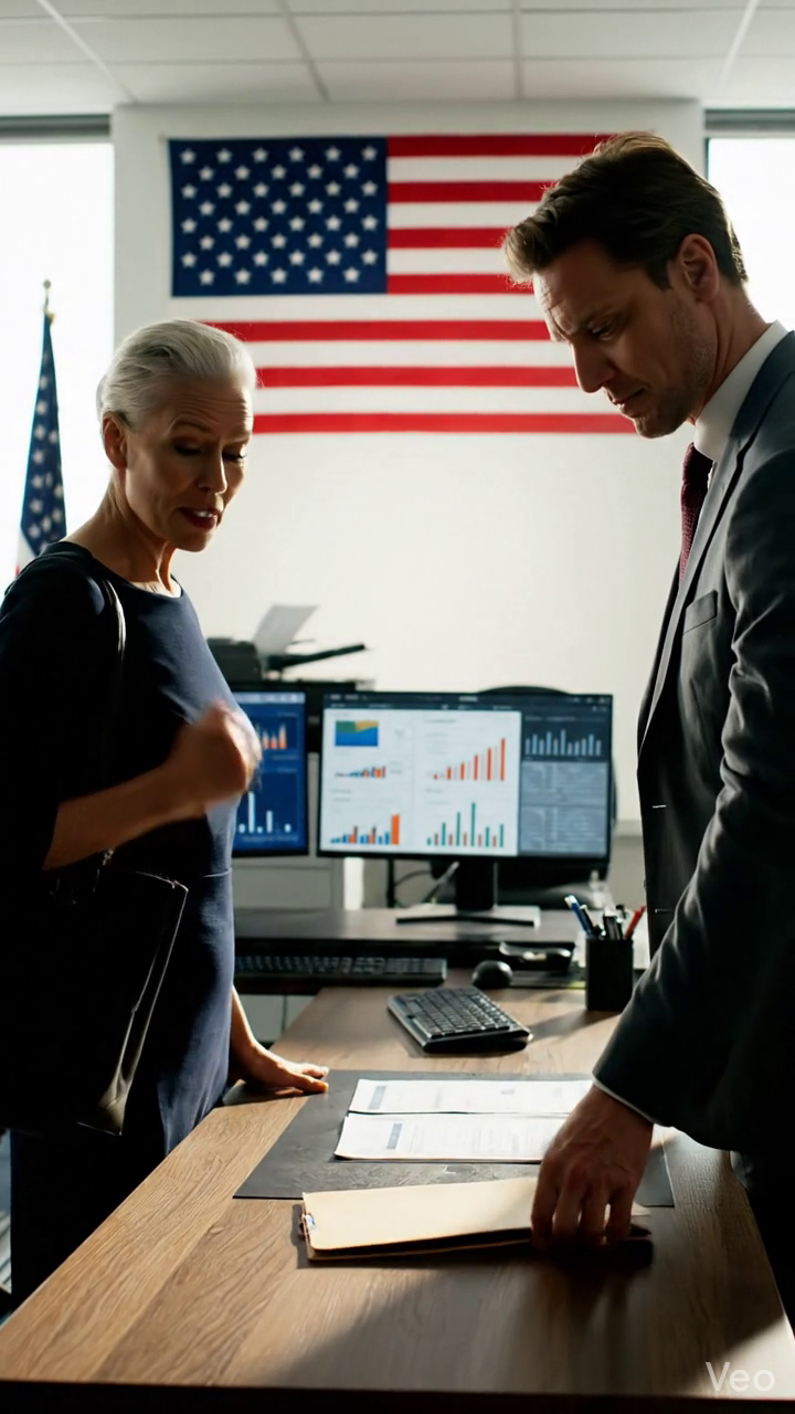 Een man in een grijs pak was aan de telefoon, zijn stem laag en voorzichtig, de stem van iemand die informatie overbracht waar de andere persoon aan de lijn niet blij mee zou zijn.