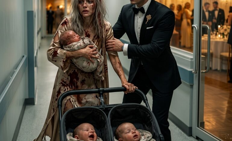 Sarah Mitchell stond als versteend in de deuropening, haar hart bonkte zo hard dat ze het in haar keel voelde. Haar linkerarm deed pijn van het vasthouden van haar achttien maanden oude zoontje, Tommy, tegen haar schouder. Hij was warm en stevig en een beetje zwaarder dan de laatste keer dat ze het echt had gemerkt, zijn kleine vingertjes gekruld in de stof van haar geleende jurk.