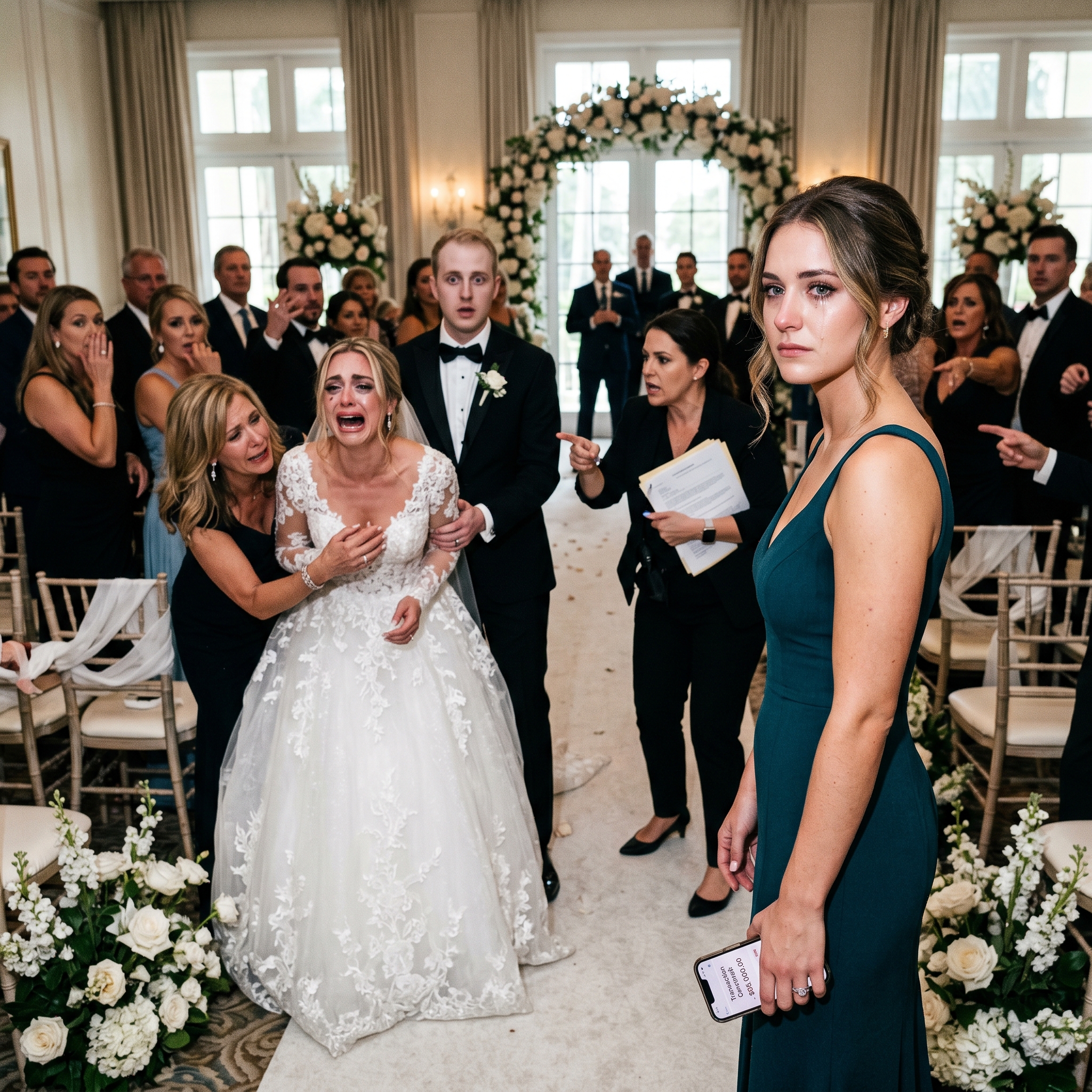 Bij de bloemenboog stond de jonge man die Sarah had ingehuurd om haar grootse entree vast te leggen, als aan de grond genageld, met zijn camera tegen zijn borst gedrukt.