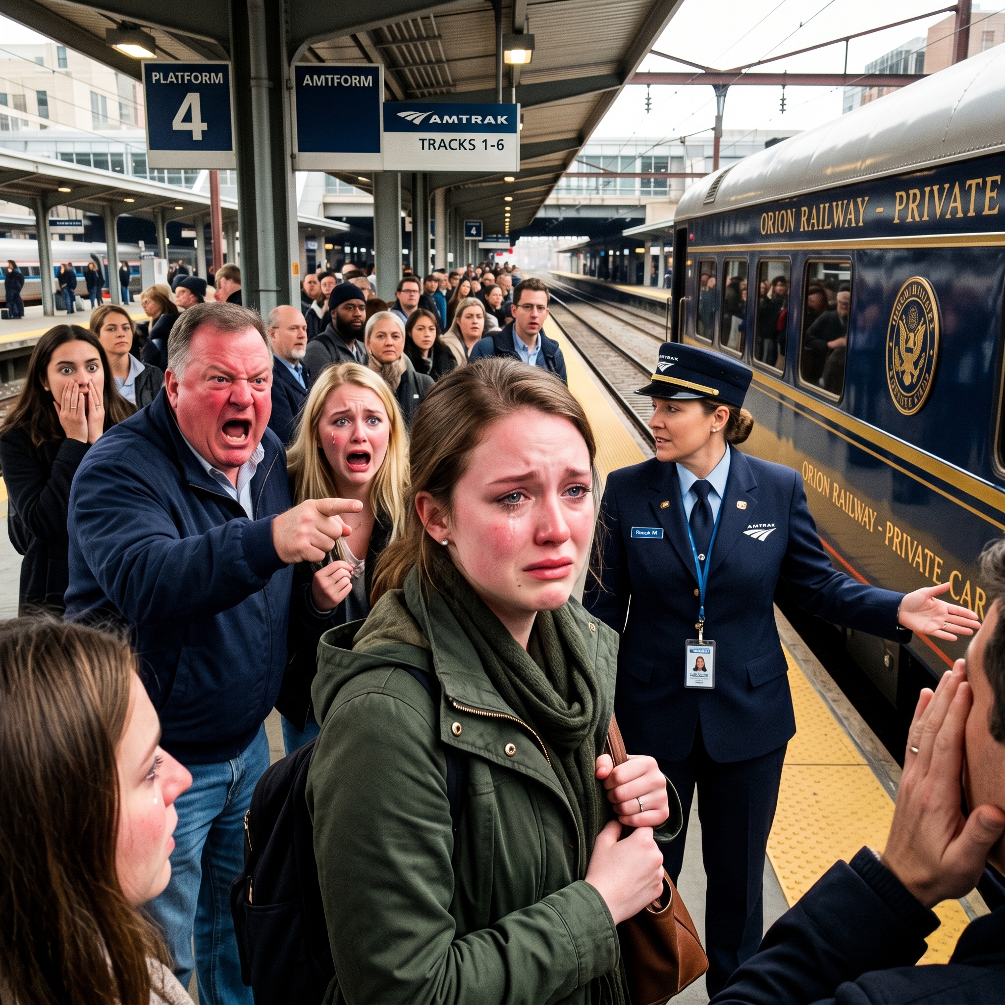 Een vrouw in een donkerblauwe jurk stapte naar voren vanuit de rand van de menigte.