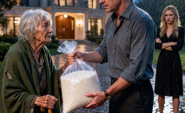 Op zeventigjarige leeftijd werd mevrouw Rose Miller praktisch het huis van haar eigen zoon uitgezet met niets anders dan een zak rijst in haar armen, terwijl de regen over haar gezicht liep alsof zelfs de hemel haar vernedering wilde verbergen.